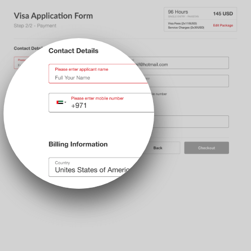 Fill out Contact Details and click on Checkout to go to secure payment page